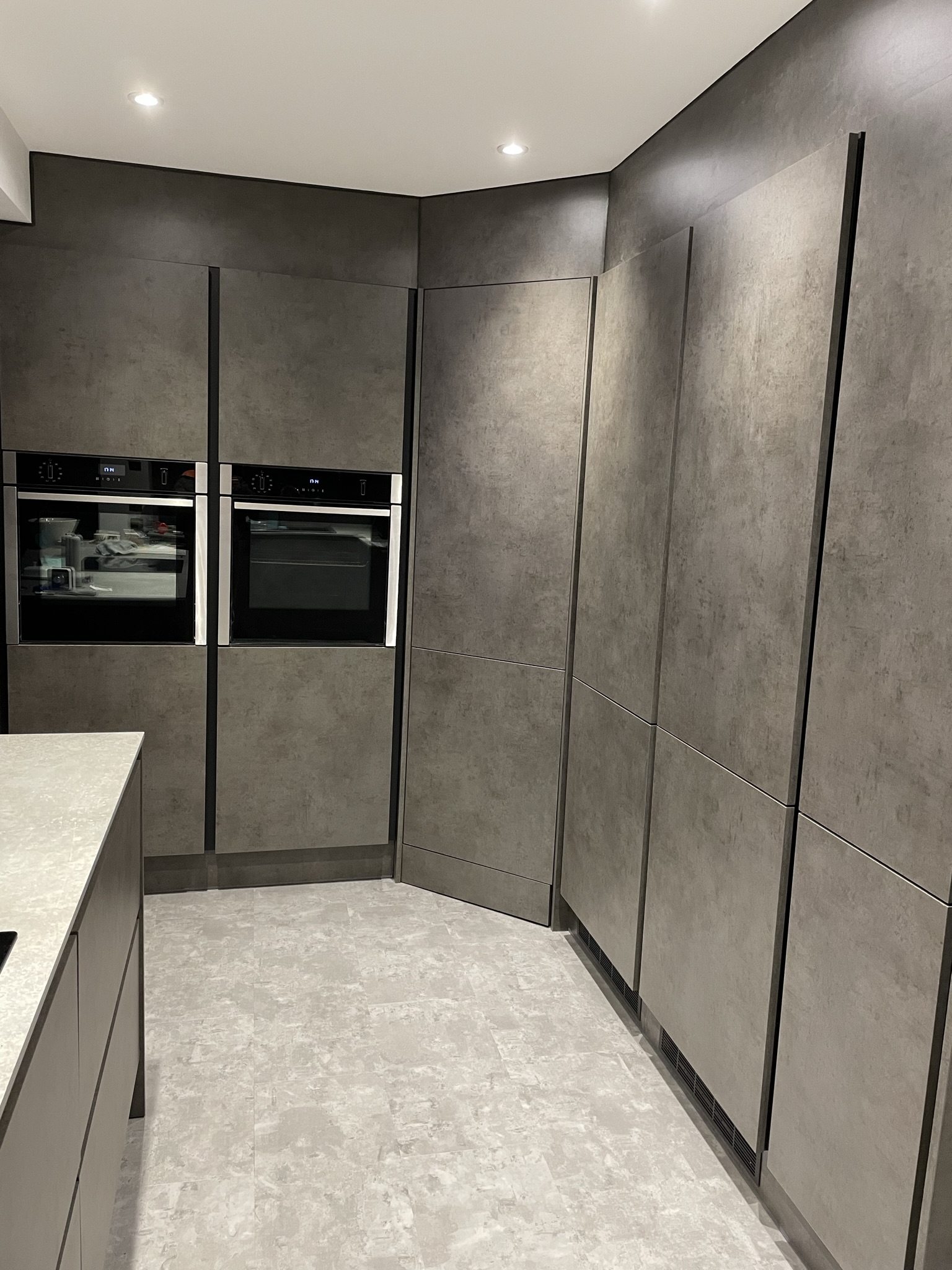 The old layout made kitchen disjointed and lacked worktop space. With the new design of switching appliances around extra workspace was created, boiler was covered by bespoke cupboard and walls tiled to finish